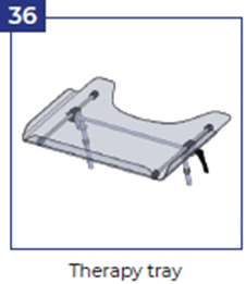 • Терапевтический столик, размер 1, прозрачный или серый (на выбор) * (*возможно только с держателем для принадлежностей И возможно только с сиденьем, установленным по направлению движения И невозможно при использовании бедренных поддержек) (36)