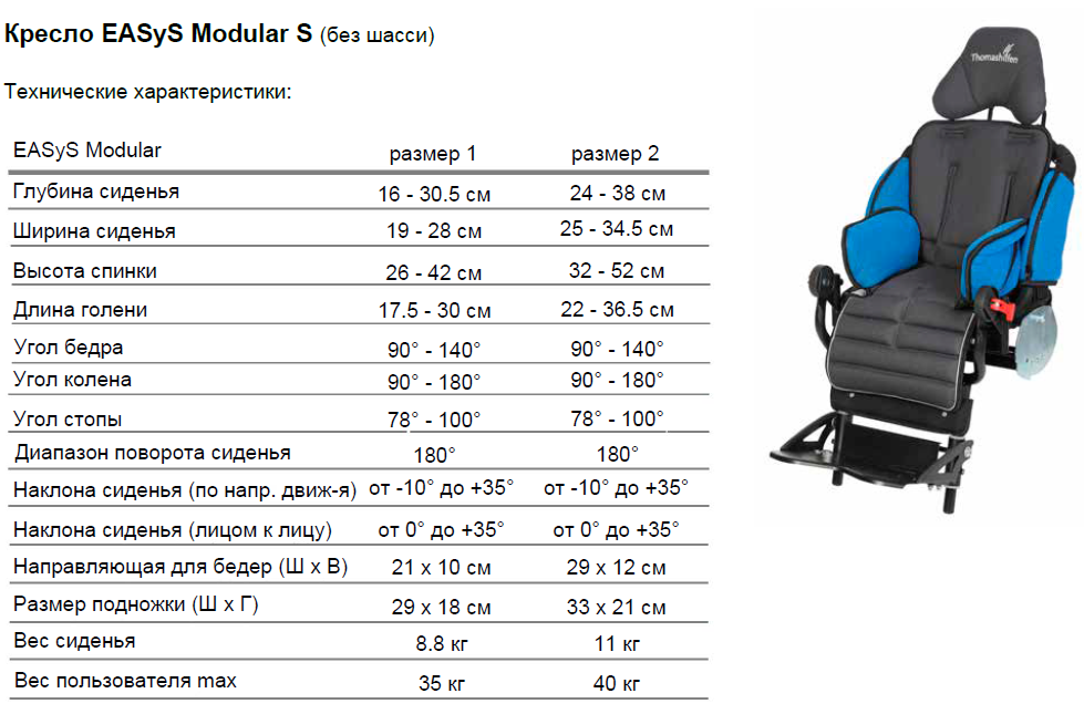 Варианты исполнения коляски с креслом Modular S (Thomashilfen, Германия)